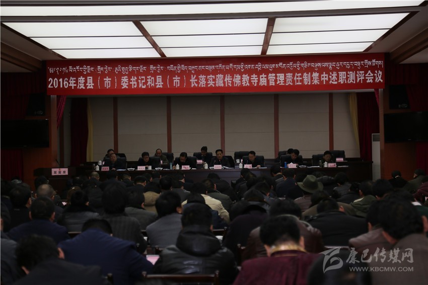 會上,與會人員觀看了寺廟分類管理達標(biāo)升級工作專題片,各縣(市)委書記作了現(xiàn)場述職,各縣(市)長作了書面述職,參會人員對各縣(市)委書記、縣(市)長落實藏傳佛教寺廟管理責(zé)任制情況進行了民主測評。