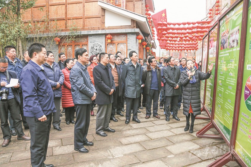 圖為州委中心學(xué)習(xí)組在蘆山縣龍門鄉(xiāng)龍門古鎮(zhèn)白伙新村學(xué)習(xí)考察。