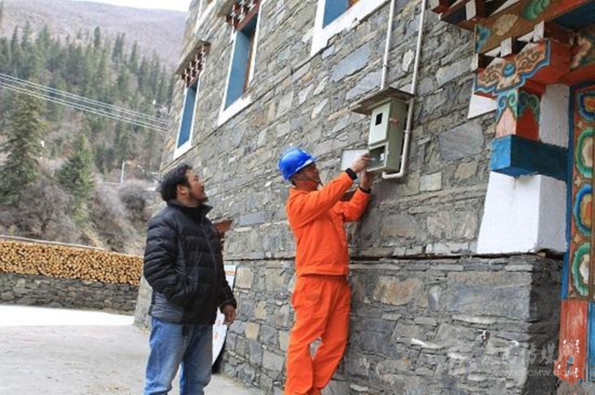 在貢嘎山鄉(xiāng)色一村,尼瑪?shù)募沂遣貐^(qū)傳統(tǒng)的木式藏寨,精美的藏式裝修風(fēng)格和現(xiàn)代化的家用電器已和諧地融為一體。尼瑪?shù)呐鲔ぶ心芙榻B說(shuō),在國(guó)家電網(wǎng)公司電力線路架設(shè)到這里以前,村里只有一臺(tái)小水電機(jī),可以利用附近的河流發(fā)很少的一點(diǎn)電。當(dāng)時(shí),這電只允許用來(lái)照明,一家不能有超過(guò)2個(gè)15瓦的燈泡。天黑了,一家人就待在家里,圍著火爐,聽(tīng)長(zhǎng)輩講格薩爾王的故事?,F(xiàn)在,家里電壓力鍋、電爐、洗衣機(jī)、電視機(jī)都齊了?!拔覀冞€買(mǎi)了音響,親戚朋友可以在家唱歌跳舞?!臂ぶ心苷f(shuō)。