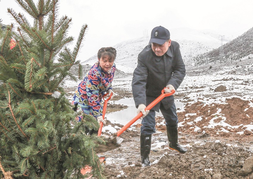 在海拔3800米的呷巴鄉(xiāng)植樹點(diǎn),劉成鳴、向秋、包建華與其他州領(lǐng)導(dǎo)一道拿起鐵鍬與機(jī)關(guān)干部、部隊(duì)官兵和學(xué)生們一起植樹。挖坑、扶苗、填土、澆水……大家合力栽下楊柳、高山柳等一棵棵適合當(dāng)?shù)厣L的樹苗。植樹過程中,劉成鳴還不時(shí)詢問本次義務(wù)植樹活動(dòng)的栽種面積、樹木品種及成活率等情況。在與同學(xué)們一起植樹時(shí),劉成鳴勉勵(lì)同學(xué)們從小樹立保護(hù)環(huán)境、愛綠護(hù)綠意識,多做有意義的事,用勤勞的雙手建設(shè)美好家園,要像今天種下的一棵棵樹苗一樣,健康茁壯成長。