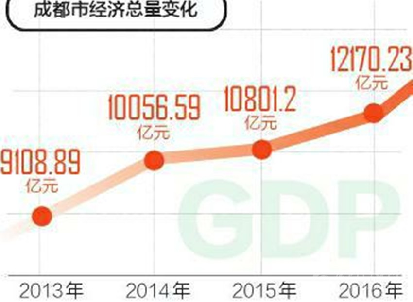 2014年,成都GDP首次突破萬(wàn)億元大關(guān),此后兩年又連跨兩個(gè)千億臺(tái)階,首位城市的地位穩(wěn)若磐石。