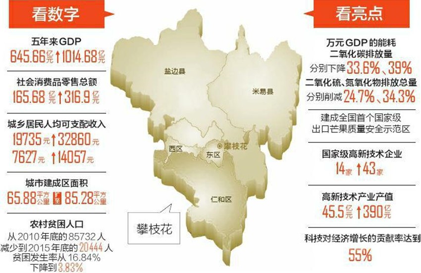 2013年,攀西戰(zhàn)略資源創(chuàng)新開發(fā)試驗區(qū)設(shè)立,兩地大面積進(jìn)入試驗區(qū);根據(jù)我省去年編制出臺的五大經(jīng)濟區(qū)“十三五”發(fā)展規(guī)劃,攀西經(jīng)濟區(qū)包括攀枝花市和涼山州2市(州)、22個縣(區(qū)),涉及經(jīng)濟總量2240億元。