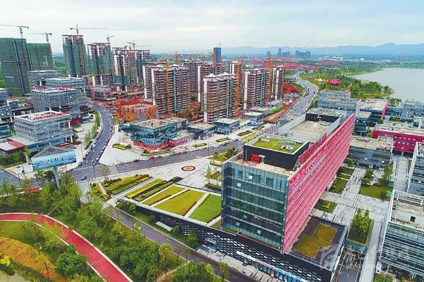 5月3日,“喜迎黨代會 天府新飛躍”全國主流新媒體瞰四川大型采訪活動首站走進(jìn)成都市。圖為航拍的天府新區(qū)成都直管區(qū)的成都科學(xué)城。 姜曦 攝