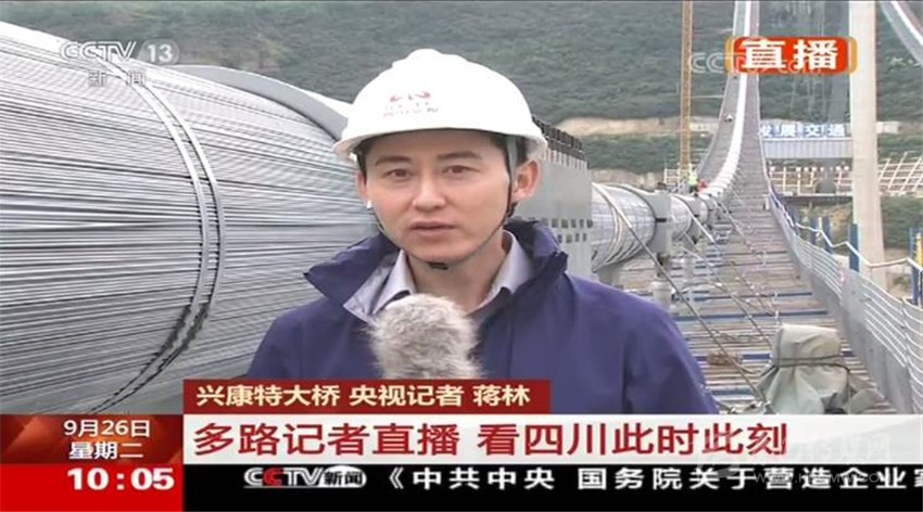 蔣林從興康特大橋建設現(xiàn)場發(fā)回直播報道
