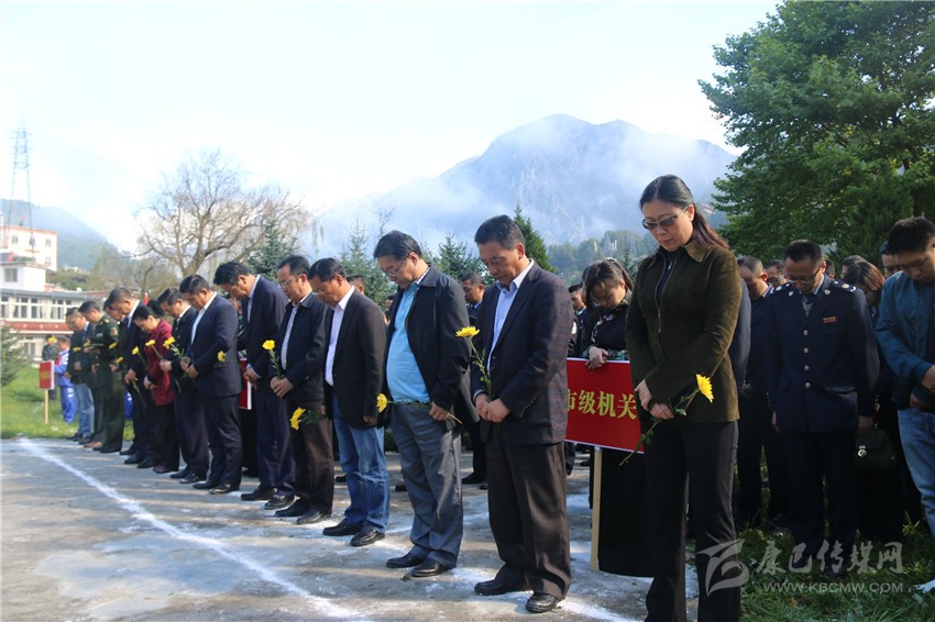 國(guó)歌唱畢,全場(chǎng)肅立,向?yàn)橹袊?guó)人民解放事業(yè)和共和國(guó)建設(shè)事業(yè)英勇獻(xiàn)身的烈士默哀。