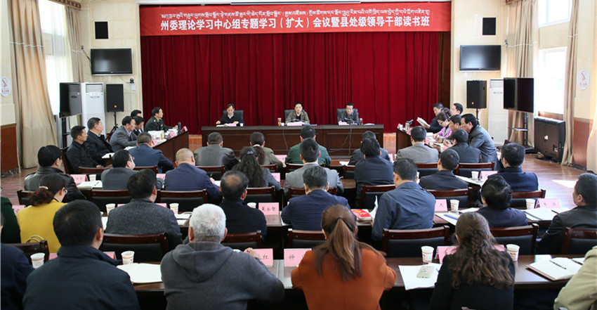 本網(wǎng)訊(記者 楊杰 文/圖)為進(jìn)一步學(xué)習(xí)好 、宣傳好、貫徹好黨的十九大精神和習(xí)近平總書記來川視察重要講話精神,把全州各級黨員領(lǐng)導(dǎo)干部的思想和行動統(tǒng)一到講話精神上來,把力量和智慧凝聚到習(xí)近平總書記提出的目標(biāo)要求上來,4月4日,州委理論學(xué)習(xí)中心組舉行專題學(xué)習(xí)(擴(kuò)大)會暨縣級主要領(lǐng)導(dǎo)干部讀書班。州委書記劉成鳴主持學(xué)習(xí)會并講話。州人大常委會主任李康參加學(xué)習(xí)。