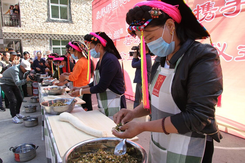 啟動(dòng)儀式上,五家群團(tuán)部門(mén)負(fù)責(zé)人分別上臺(tái)接收“喜波勒雄”公益助貧行動(dòng)任務(wù)包。隨即,開(kāi)展的“喜波勒雄”新時(shí)代講堂、包酸菜包子、民俗接待基礎(chǔ)技能比拼、栓頭帕比賽、繡藏繡比賽等“五洗一掃”評(píng)選分項(xiàng)活動(dòng)人氣爆棚,過(guò)往游客紛紛駐足,盛贊當(dāng)?shù)孛袼罪L(fēng)情獨(dú)具特色。