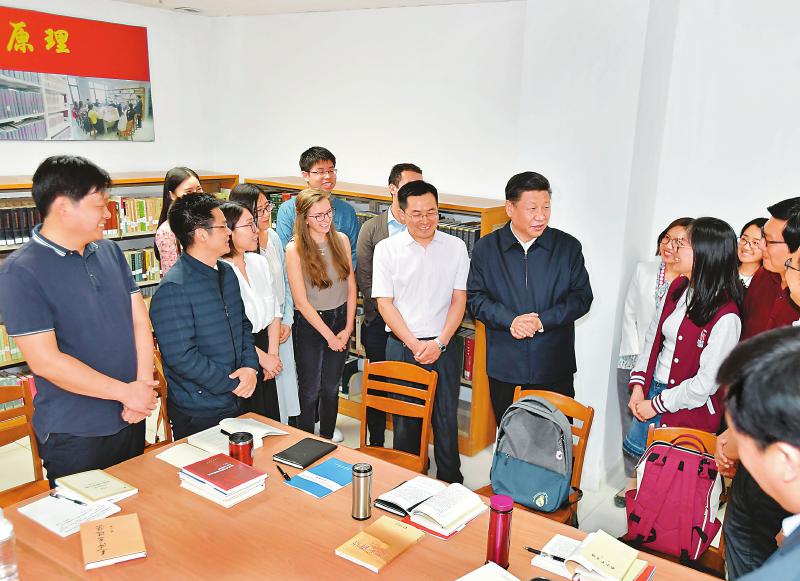 5月2日,中共中央總書記、國家主席、中央軍委主席習近平來到北京大學考察。這是習近平在北京大學馬克思主義學院,與正在就“解讀新時代”進行座談交流的中外學生親切交談。 新華社記者 李濤 攝
