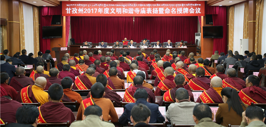 本網(wǎng)訊 近日,州委、州政府召開會(huì)議為2017年度文明和諧寺廟命名授牌,并表揚(yáng)愛國(guó)守法模范僧尼。州委書記劉成鳴出席會(huì)議并講話。他希望,廣大僧尼對(duì)標(biāo)“政治合格、愛國(guó)愛教、遵規(guī)守法、持戒精修、團(tuán)結(jié)進(jìn)步、利益眾生”六個(gè)標(biāo)準(zhǔn)做好表率,教育引導(dǎo)廣大僧尼和信教群眾“感黨恩、愛祖國(guó)、守法制、奔小康”,積極推動(dòng)宗教界與全州脫貧奔康和長(zhǎng)治久安進(jìn)程相協(xié)調(diào)、與社會(huì)主義社會(huì)相適應(yīng)。州委副書記、州長(zhǎng)肖友才主持會(huì)議。州人大常委會(huì)主任李康、州政協(xié)主席向秋出席。