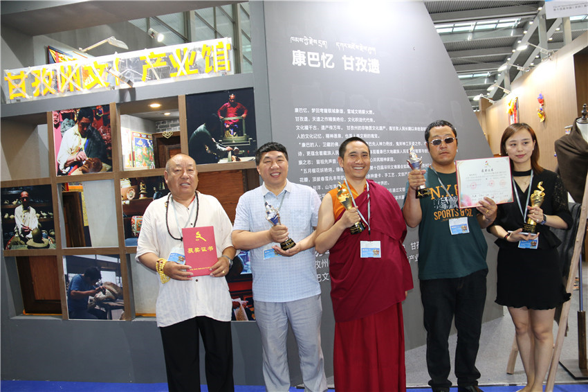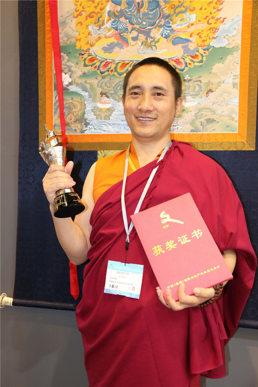 據(jù)了解,在本次深圳文博會(huì)上,我州參加十四屆深圳文博會(huì)參賽展品中有10件工藝品獲獎(jiǎng)。其中,白玉縣董察文化公司參展作品首當(dāng)其沖獲得工藝美術(shù)文化創(chuàng)意金獎(jiǎng)。爐霍縣珍馬文化藝術(shù)公司、爐霍縣華彩文化傳播有限公司、白玉縣河坡藏民族手工藝公司、新龍藥泥面具分別獲得工藝美術(shù)文化創(chuàng)意銀獎(jiǎng);德格縣多普溝噶瑪噶孜文化旅游公司、甘孜州郎卡杰唐卡有限公司、丹巴木版畫(huà)、康體書(shū)法、德格絳紅天堂文化旅游公司分別獲得工藝美術(shù)文化創(chuàng)意銅獎(jiǎng)。同時(shí),州文體廣新局和康巴文化研究院獲優(yōu)秀組織獎(jiǎng);甘孜州全境文化產(chǎn)業(yè)有限發(fā)展公司和康巴聚慧文化傳播有限公司獲得優(yōu)秀展示獎(jiǎng)。其它參展商均獲得本屆文博會(huì)優(yōu)秀入圍獎(jiǎng)。國(guó)家一級(jí)手工藝美術(shù)大師、爐霍縣華彩文化傳播有限公司馮建華:“這一次是我公司第一次在文博會(huì)上參展,就榮獲銀獎(jiǎng),這要感謝黨委政府和文化部門(mén)提供的平臺(tái)。相信在此基礎(chǔ)上狠下功夫,越做越好,將陶瓷藝術(shù)與唐卡藝術(shù)很好的發(fā)揚(yáng)光大。”