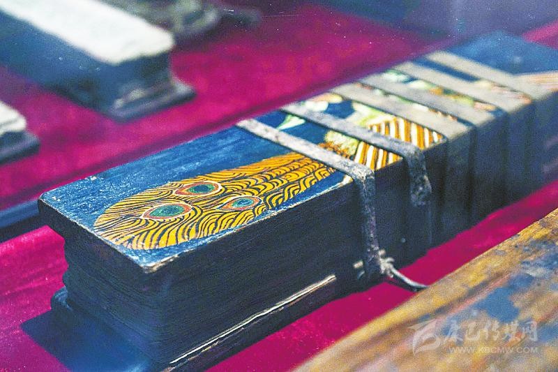 在展覽現(xiàn)場(chǎng),擺放著一些格薩爾的藏文文獻(xiàn)資料,與傳統(tǒng)漢語古籍裝幀不同,藏文典籍主要采用梵夾裝形式,俗稱長(zhǎng)條本。此次展出的包括格薩爾梵夾裝的手抄本、伏藏本、木刻本以及近六十年來正式出版的各種圖書等等,囊括了數(shù)百部格薩爾王史詩(shī)。