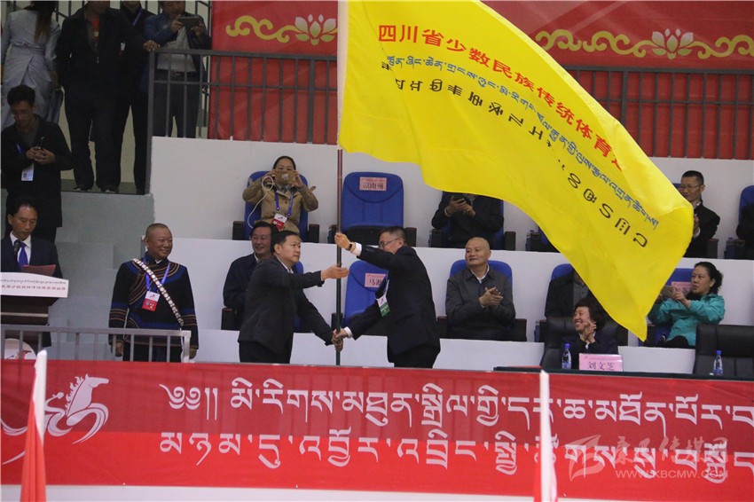 閉幕式上舉行了會旗交接儀式,由甘孜州委常委、州人民政府副州長李一昕將運動會會旗交還組委會副主任、省民族宗教委主任張富國,由張富國將會旗轉(zhuǎn)交給下屆民族運動會承辦單位代表涼山州委常委、州人民政府副州長裴啟斌。四川省第十六屆少數(shù)民族傳統(tǒng)體育運動會將于2022年在涼山州舉行。