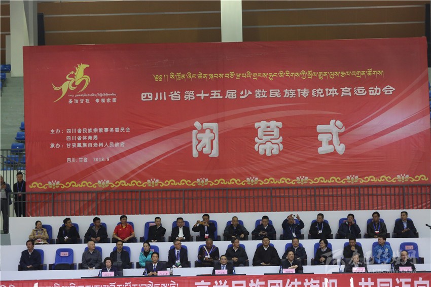 組委會副主任、省政府副秘書長嚴衛(wèi)東,組委會副主任、甘孜州委書記劉成鳴,組委會副主任、省民宗委主任張富國,組委會執(zhí)行主任、省民族宗教委副主任劉文芝,組委會執(zhí)行主任、省體育局副局長溫建等領(lǐng)導(dǎo)以及組委會成員、各代表團和裁判團出席閉幕式。