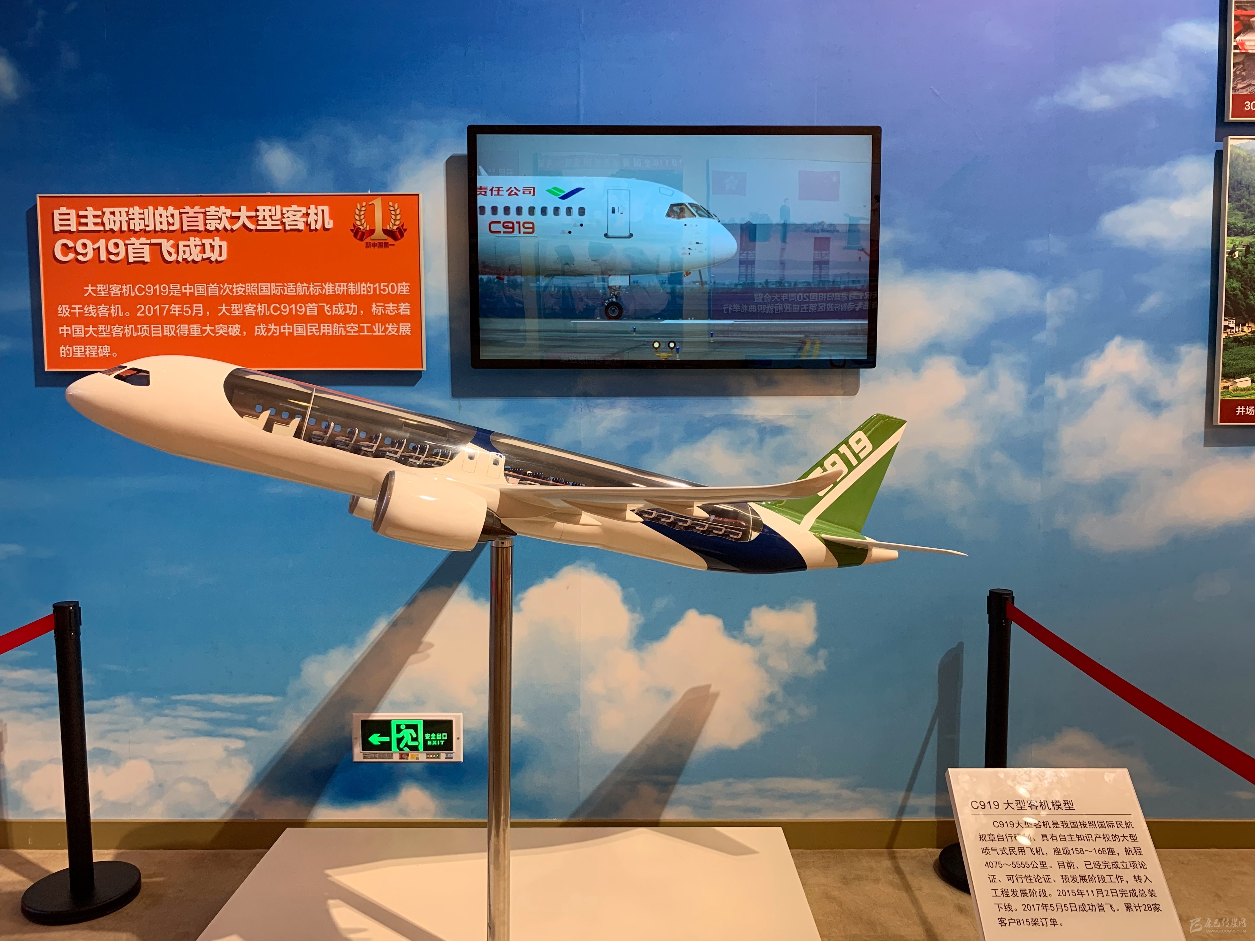 在2017年展區(qū),C919大飛機模型,配合解說圖片以及總裝下線當日的視頻展出。