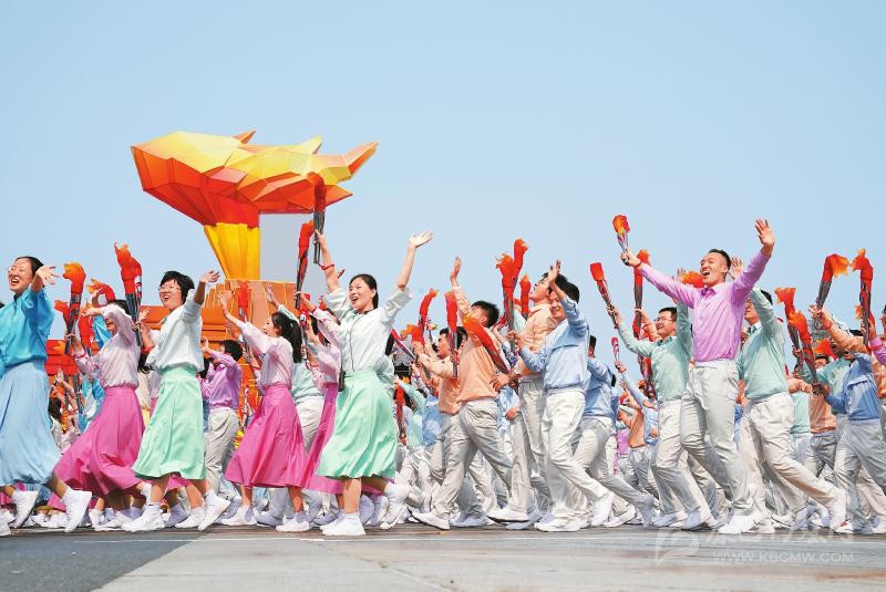 群眾游行中的凝心鑄魂方陣。 新華社記者王毓國攝