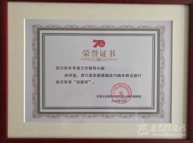 本網(wǎng)訊(楊藝茂)10月9日,記者從省文化和旅游廳獲悉,經(jīng)慶祝大會(huì)服務(wù)保障和群眾游行指揮部評(píng)選,四川彩車專項(xiàng)工作領(lǐng)導(dǎo)小組榮獲國(guó)慶70周年群眾游行地方彩車“創(chuàng)新獎(jiǎng)”。