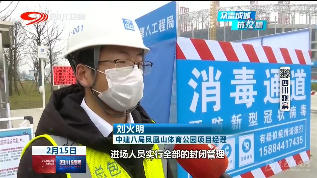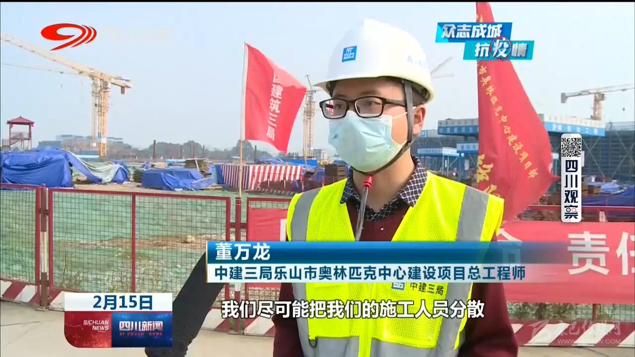 中建三局樂山市奧林匹克中心建設(shè)項(xiàng)目總工程師 董萬龍:“我們盡可能把我們的施工人員分散,不要聚集,對(duì)內(nèi)我們做好防控物資的保障,口罩、消毒水以及酒精這些防疫物資已經(jīng)齊全?!?/p>