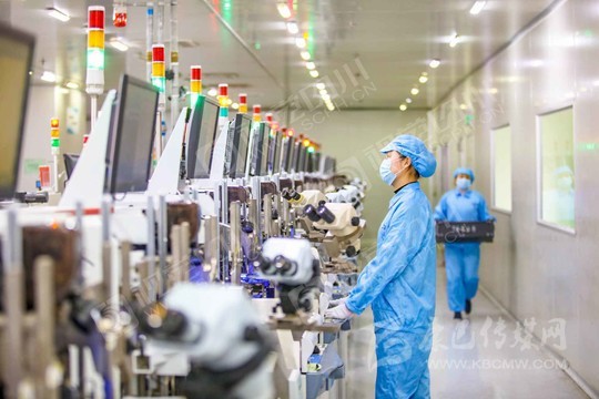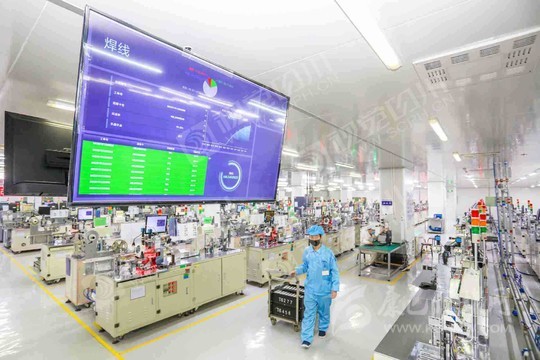 遂寧市經(jīng)開區(qū)藍(lán)彩電子智能信息化車間,工人正在生產(chǎn)線開足馬力加緊生產(chǎn)。