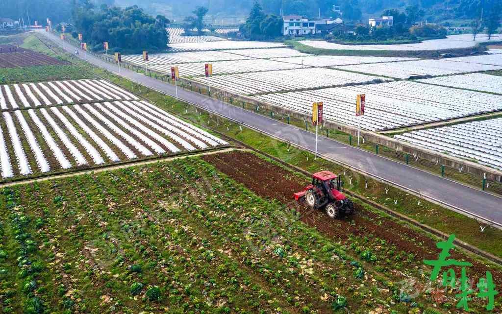 閬中市彭城鎮(zhèn)五谷臺村,機(jī)械正在菜地里作業(yè),開溝起壟施底肥一氣呵成。