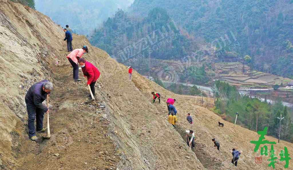 南江縣楊壩鎮(zhèn)組織的勞動力在柏林村新開墾的茶梯地開溝理廂準(zhǔn)備栽植茶苗。
