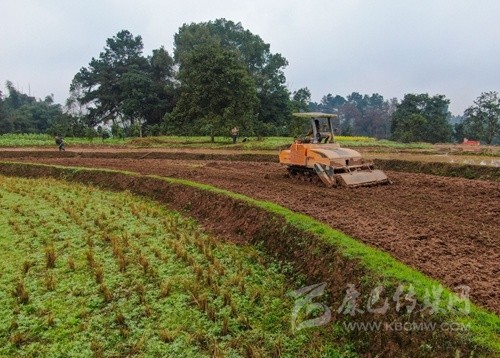 2月24日,瀘州市合江縣白米鎮(zhèn)橋上村,專(zhuān)業(yè)合作社的機(jī)耕手在用旋耕機(jī)耕地。 記者 郝飛 攝