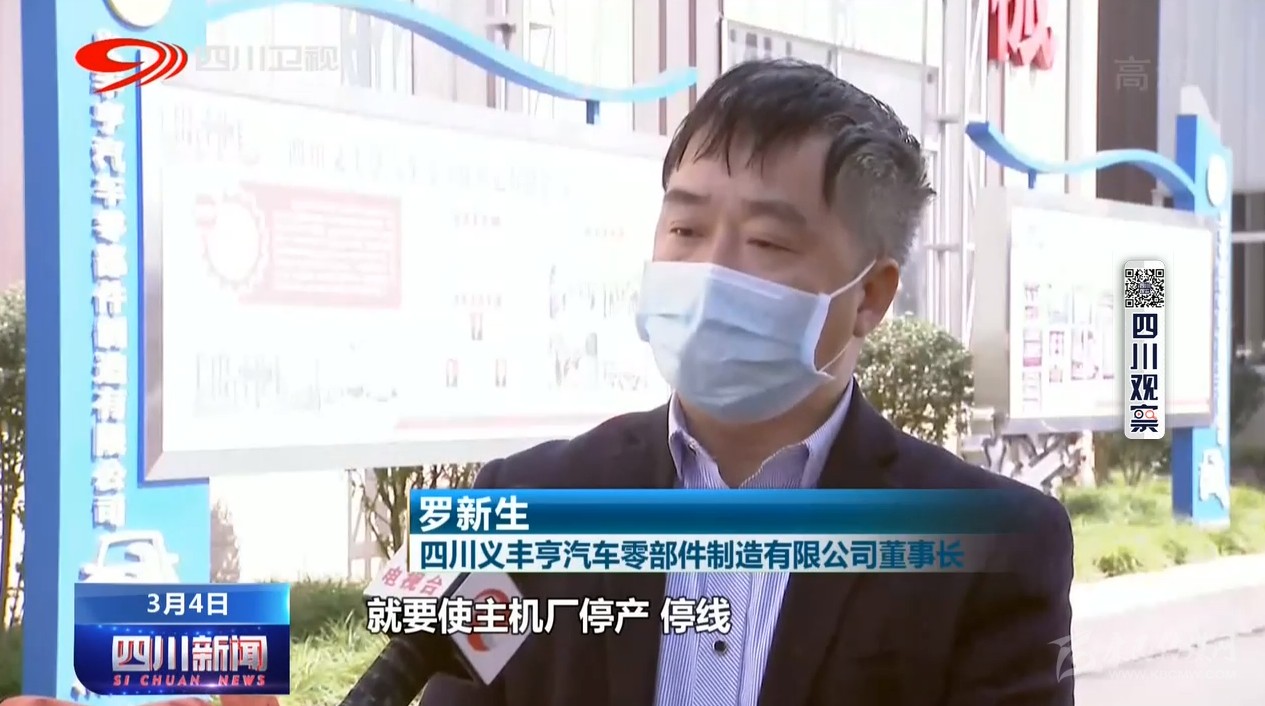 四川義豐亨汽車零部件制造有限公司董事長 羅新生:如果產(chǎn)品運不出去,就要使主機廠停產(chǎn)停線,這樣就要造成我們企業(yè)(接)不能再繼續(xù)生產(chǎn),嚴重點就要取消我們企業(yè)的配套資質(zhì)。
