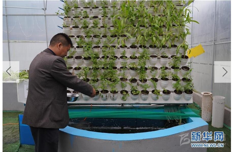 4月19日,在蘆山縣飛仙關(guān)鎮(zhèn)禾茂農(nóng)業(yè)園區(qū),工作人員給魚喂食。這里采取“魚菜共生”的模式,養(yǎng)魚和種菜的水通過過濾系統(tǒng)實(shí)現(xiàn)循環(huán)利用。