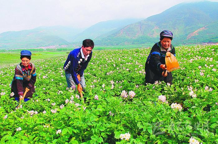 ▲村民在布拖縣拖覺鎮(zhèn)日拍村萬畝馬鈴薯高產(chǎn)示范基地里除草。該縣是四川省優(yōu)勢(shì)特色馬鈴薯生產(chǎn)基地。 (攝于2013年6月)