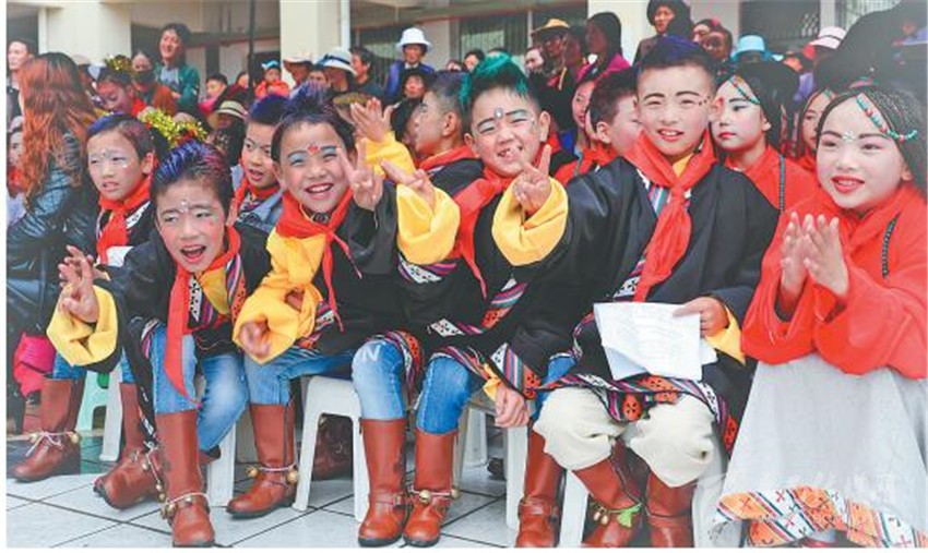藏家孩子在兩河口電站參觀。