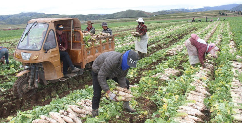 一根根白蘿卜,從理塘縣的沙礫地里,被農(nóng)牧民拔出來(lái),被迅速清洗、包裝,及時(shí)裝上排隊(duì)等候的冷鏈車(chē)。過(guò)雅江,翻折多山、二郎山,在雪域高原行駛四百公里后,抵達(dá)川西平原,再上成渝環(huán)線高速,后經(jīng)廈蓉高速,抵達(dá)珠海、深圳,進(jìn)入香港、澳門(mén)市場(chǎng)。