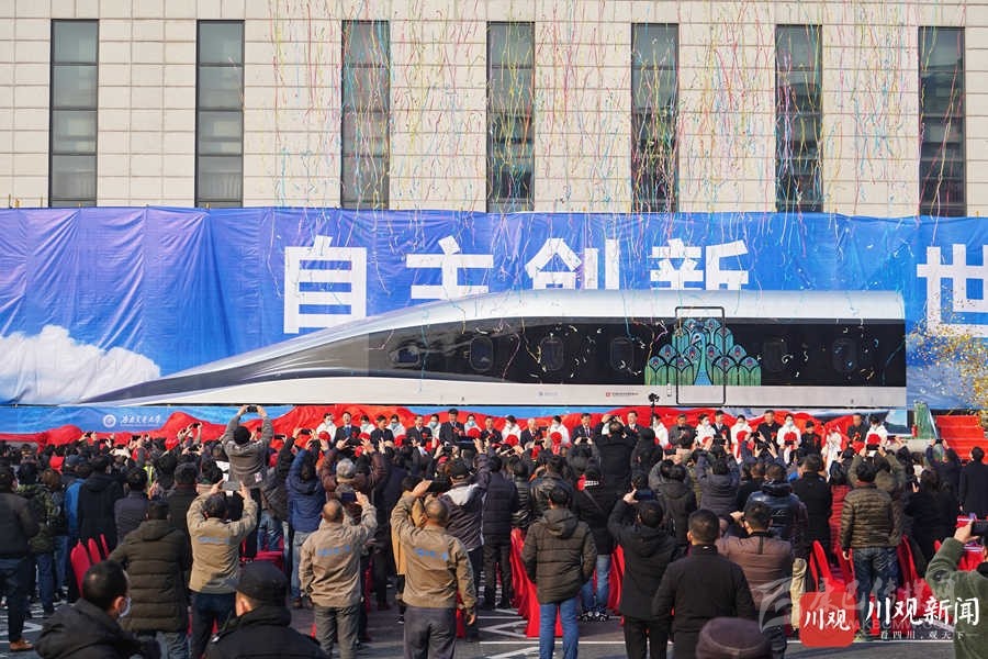 2021年1月13日上午,具有完全自主知識產(chǎn)權(quán)的高溫超導(dǎo)高速磁浮工程化樣車及試驗線在西南交通大學九里校區(qū)正式啟用。華小峰 攝