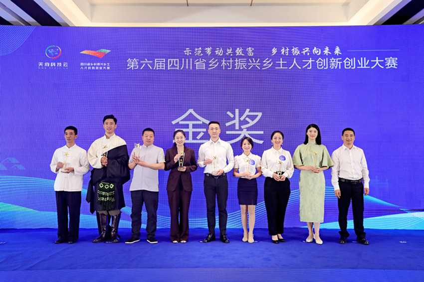 本網(wǎng)訊 5月25日至26日,第六屆四川省鄉(xiāng)村振興鄉(xiāng)土人才創(chuàng)新創(chuàng)業(yè)大賽在德陽舉辦。甘孜州代表隊(duì)8名選手參加比賽,經(jīng)過激烈角逐,雅江縣天道農(nóng)業(yè)發(fā)展有限公司丁真那呷獲金獎(jiǎng),九龍縣龍韻民族工藝品有限公司村仁拉粗獲銀獎(jiǎng),巴塘縣三一八零礦泉水有限公司謝海棠、九龍?zhí)爨l(xiāng)原生態(tài)茶業(yè)有限公司羅太榮、稻城縣海子商務(wù)科技有限公司唐敏獲銅獎(jiǎng),其余3名選手獲鄉(xiāng)村振興貢獻(xiàn)獎(jiǎng)。 近年來,我州高度重視鄉(xiāng)土人才培育,連續(xù)舉辦鄉(xiāng)土人才創(chuàng)新創(chuàng)業(yè)大賽4屆,先后選派58名優(yōu)秀鄉(xiāng)土人才參加四川省鄉(xiāng)土人才創(chuàng)新創(chuàng)業(yè)大賽,共獲得金獎(jiǎng)8名、銀獎(jiǎng)2名、銅獎(jiǎng)10名、脫貧攻堅(jiān)特別獎(jiǎng)9名、鄉(xiāng)村振興貢獻(xiàn)獎(jiǎng)9名。進(jìn)一步激發(fā)了農(nóng)村鄉(xiāng)土人才創(chuàng)新創(chuàng)業(yè)熱情,為示范引領(lǐng)更多鄉(xiāng)土人才成為創(chuàng)業(yè)致富領(lǐng)頭人,帶動(dòng)農(nóng)村經(jīng)濟(jì)全面發(fā)展、助力鄉(xiāng)村全面振興起到了積極作用。圖為頒獎(jiǎng)現(xiàn)場。 州科協(xié) 文/圖