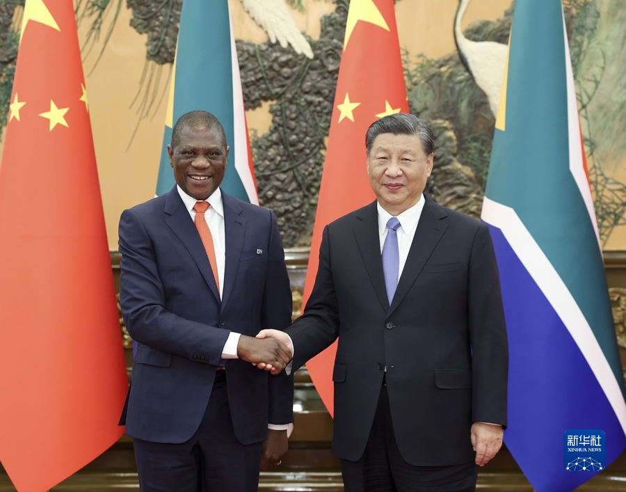 習(xí)近平強(qiáng)調(diào),中方支持南非探索符合本國(guó)國(guó)情的現(xiàn)代化道路,愿同南非進(jìn)一步夯實(shí)政治互信基礎(chǔ),提升互利合作水平。中方愿同南非等非洲國(guó)家一道,落實(shí)中國(guó)支持非洲工業(yè)化、農(nóng)業(yè)現(xiàn)代化、人才培養(yǎng)三項(xiàng)舉措以及高質(zhì)量共建“一帶一路”的八項(xiàng)行動(dòng),打造一批高標(biāo)準(zhǔn)、惠民生、可持續(xù)的合作項(xiàng)目,提升中非合作的戰(zhàn)略性和可持續(xù)性,推動(dòng)構(gòu)建高水平中非命運(yùn)共同體。雙方應(yīng)繼續(xù)密切在金磚國(guó)家機(jī)制內(nèi)合作,加強(qiáng)發(fā)展中國(guó)家團(tuán)結(jié)合作,推動(dòng)全球治理體系朝著有利于發(fā)展中國(guó)家的方向發(fā)展。