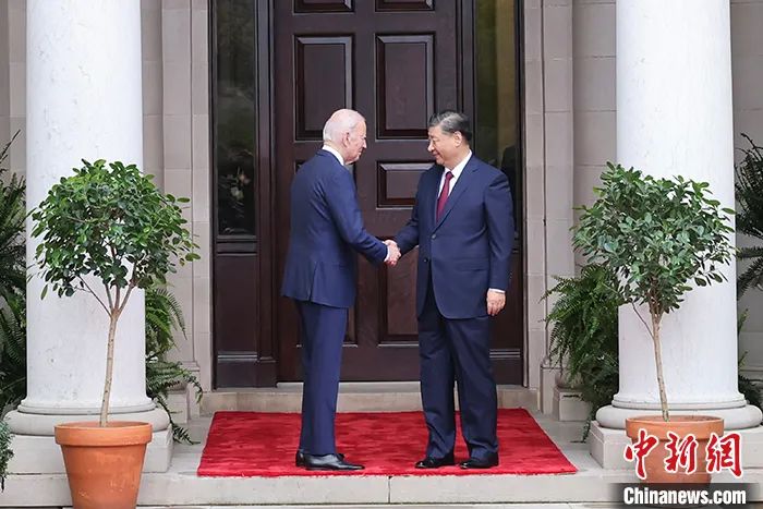 當?shù)貢r間11月15日,中國國家主席習近平在美國舊金山斐洛里莊園同美國總統(tǒng)拜登舉行中美元首會晤。中新社記者 盛佳鵬 攝