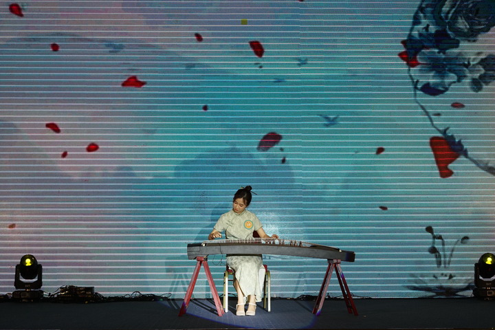 5月20日,第22屆“漢語(yǔ)橋”世界大學(xué)生中文比賽越南北部及中部賽區(qū)決賽中,參賽大學(xué)生表演古箏和太極拳。