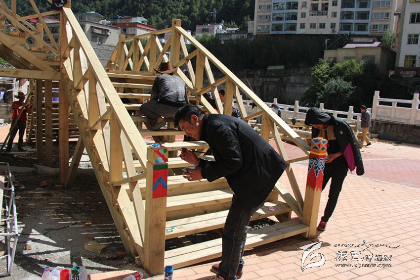 “在深秋艷陽的照射下,環(huán)山路木質(zhì)棧道的長(zhǎng)廊上圖案絢麗色調(diào)鮮明?,F(xiàn)場(chǎng)有序地堆放著紅色的地磚和白色的木材。藏族畫匠在專心描摹,工人們的鋸子有節(jié)奏地發(fā)出聲音。在公主橋的施工現(xiàn)場(chǎng),村民們有說有笑地忙著平路基,抬石頭、撮泥巴、砌墻。”這是近日筆者在康定文成環(huán)山路施工現(xiàn)場(chǎng)看到的熱鬧場(chǎng)面。