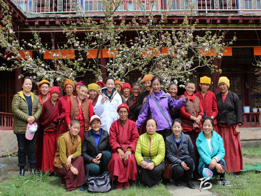 5月10日早上,空氣格外清新,筆者隨甘孜縣“姐妹手拉手、健康心連心”關(guān)愛活動(dòng)小組一行從縣城前往那蒼寺。車行半小時(shí)后,來(lái)到了覺姆們的清修之地,寺院環(huán)境幽雅,陣陣花香沁人心脾。覺姆們都高興地走出寺廟歡迎“姐妹”的到來(lái)。