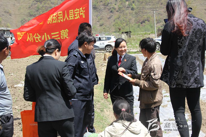 在法制宣傳進鄉(xiāng)村活動中,瀘定縣法院始終堅持圍繞服務中心大局,把矛盾糾紛隱患多的移民村和群眾觀念相對落后的貧困村作為重點對象。利用農(nóng)閑季節(jié)、重大節(jié)慶,采取經(jīng)典案例、法制講座和發(fā)放雙語宣傳手冊等群眾喜聞樂見的形式,積極開展送法下鄉(xiāng)、以案說法和法律咨詢服務,不斷提高群眾學法、守法、用法意識。