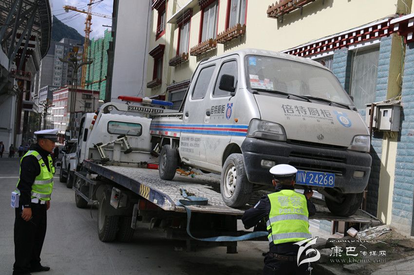 本網(wǎng)訊(記者 鄧安華 唐闖 文/圖)2日上午,記者在康定市北門體育場(chǎng)附近看見幾名交警正在拖移亂停亂放在街邊的一臺(tái)車輛。據(jù)悉,為保證藝術(shù)節(jié)期間康定主城區(qū)的交通順暢,康定市公安局交警大隊(duì)從當(dāng)天起以康定主城區(qū)為中心,嚴(yán)厲查處影響交通秩序的各類突出交通違法行為。