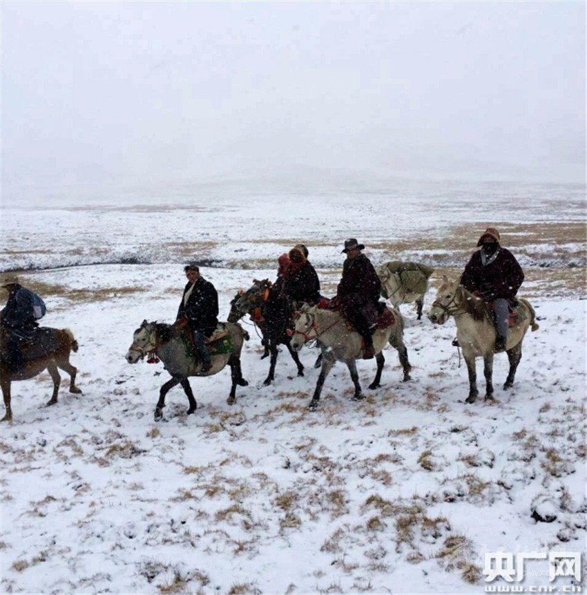 馬背宣講隊行進(jìn)在風(fēng)雪宣講路上。