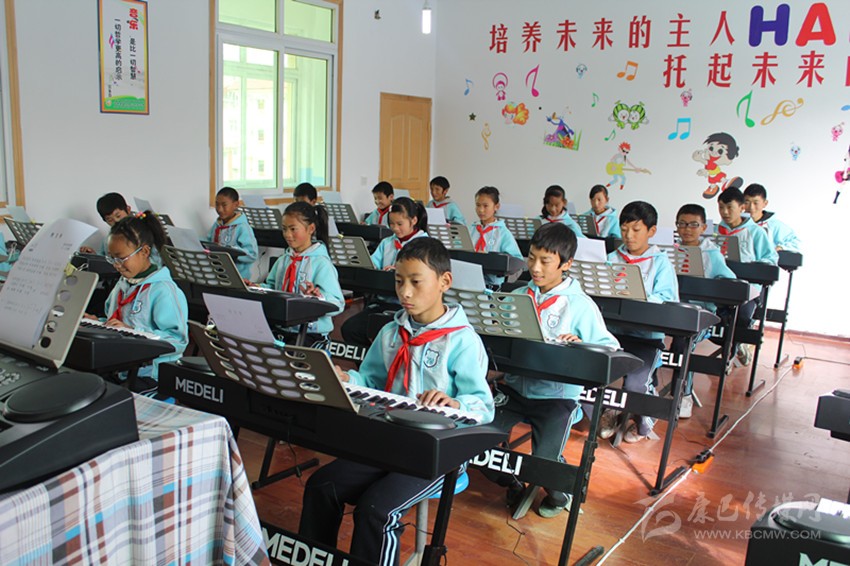 在甘孜縣城關(guān)第一完全小學(xué)的教室里,音樂教師正在教授孩子們識(shí)別五線譜,孩子們用稚嫩的雙手在電子琴鍵盤上彈奏著音樂的同時(shí),嘴里還不斷的唱著“哆唻咪發(fā)嗦”。放學(xué)時(shí),孩子們還沉浸在音樂的余韻中,興奮地給前來接送上課的父母們講述著課堂上的趣事。學(xué)生家長翁登不勝唏噓:“大娃娃讀一完小的時(shí)候,只有語文數(shù)學(xué)和藏文可以學(xué),其他的課沒有專門的老師教,現(xiàn)在小女兒好安逸,還有專門的音樂老師教他們唱歌,現(xiàn)在的老師真的很厲害!”