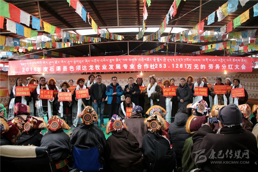 本網(wǎng)訊(刁海瀚 文/圖)日前,在海拔4500米的石渠縣色須鎮(zhèn)紅旗一村村民活動中心院內(nèi),色須鎮(zhèn)達(dá)攏合作社將253萬余元年底分紅分派給了263個牧民家庭,其中,建檔立卡貧困戶達(dá)70戶。