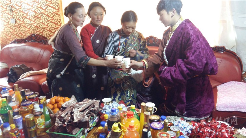 根秋卓瑪一家是俄多瑪鄉(xiāng)的村民,初一一大早,根秋卓瑪就穿上節(jié)日的盛裝?!敖裉煳覀円涯曦洈[放出來,等親戚朋友祈?;貋恚覀円患揖蜁谝黄?,拉著家常、吃著美食、唱著山歌,高高興興歡度藏歷新年。”根秋卓瑪說。