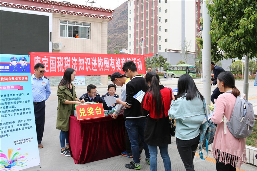 本網(wǎng)訊(吳海波 記者 張嗥)購物時商家不給發(fā)票,可以打哪個電話進(jìn)行投訴?增值稅納稅人分為哪幾類?”這一系列與生活息息相關(guān)的稅法知識有獎答題,引來了眾多四川民族學(xué)院同學(xué)的熱情參與。420 日,康定市稅法宣傳月活動持續(xù)升溫,稅法宣傳首次走進(jìn)高等院校。