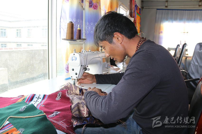 在白玉縣阿察鎮(zhèn)街上,有一處很不起眼的服裝加工店,店里擺放著各色質(zhì)地考究的服裝面料和時尚的藏族服裝。白玉縣祥陽措青年悅民族服飾商貿(mào)有限責(zé)任公司經(jīng)理在熱是納塔鄉(xiāng)納塔村的牧民,他穿著自己生產(chǎn)的藏裝,在工作室里,看到牧民或操作縫紉機(jī)、或用手工精心制作藏裝,他露出了開心的笑容。他一再叮囑員工,一定要仔細(xì),要拿出最好的本事,用一流的技藝,不僅要讓顧客滿意,還要打出公司的服裝品牌,質(zhì)量是公司和員工的立身之本。