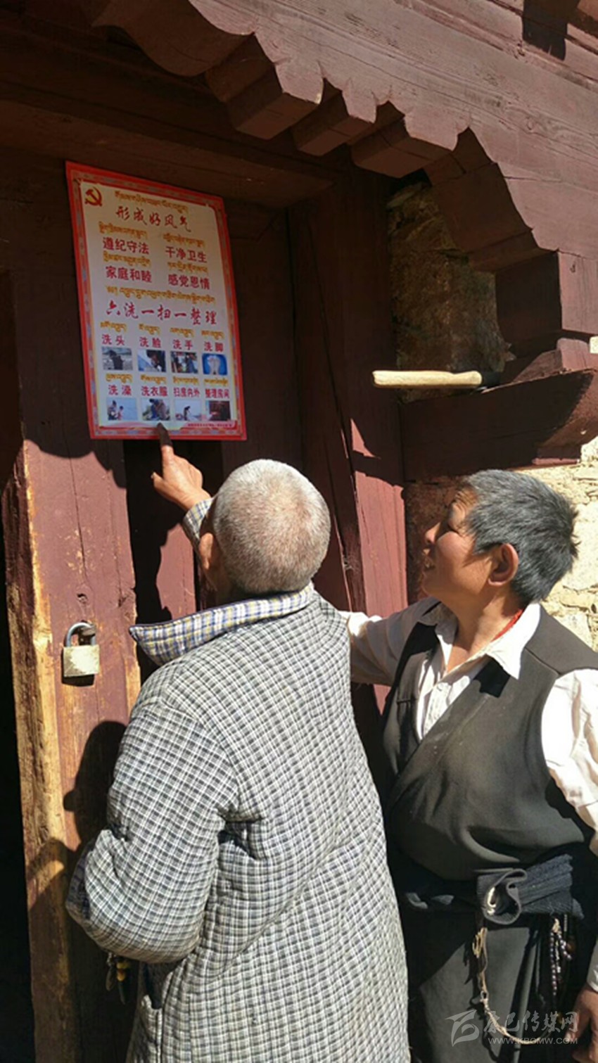 本網(wǎng)訊(扎西曲批 縣委中心報(bào)道組 葉強(qiáng)平 文/圖)11月9日,理塘縣甲洼鎮(zhèn)俄丁村老黨員格絨拉姆指著村民家門(mén)上掛的“六洗一掃一整理”紅牌,再次向村民講解宣傳相關(guān)要求,引導(dǎo)貧困群眾養(yǎng)成好習(xí)慣形成好風(fēng)氣。