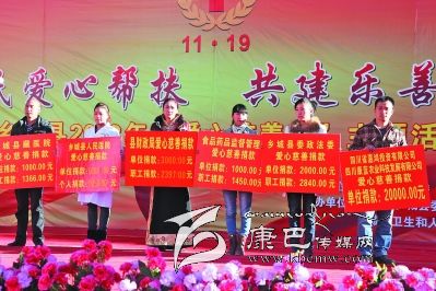 本網(wǎng)訊(何才華 文/圖)11月18日,鄉(xiāng)城縣愛心慈善募捐活動(dòng)在該縣香巴拉休閑廣場(chǎng)舉行,來自全縣的機(jī)關(guān)干部、宗教界代表、個(gè)體工商戶代表、建筑施工企業(yè)等各界人士近2000人為需要救助者獻(xiàn)出自己的一份愛心?;顒?dòng)現(xiàn)場(chǎng)募捐資金532998元。