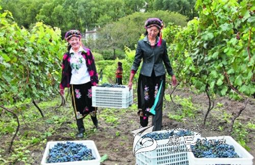 村民喜摘葡萄。