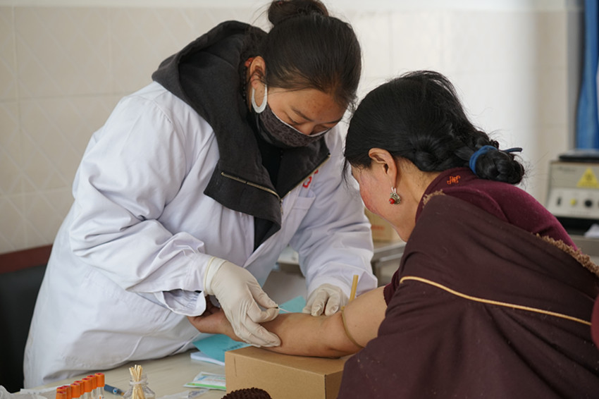 醫(yī)務(wù)人員正在給農(nóng)牧民群眾進(jìn)行健康檢查。