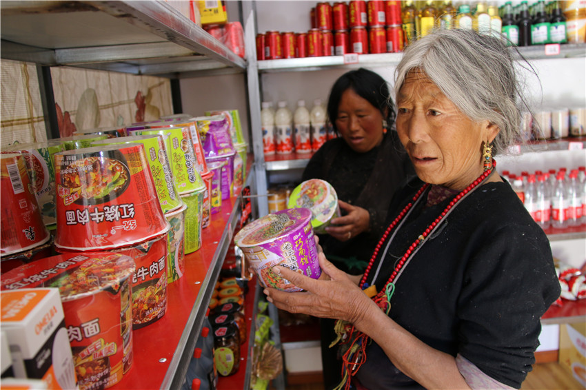 由于超市商品質量好價格合理,不僅洛蝦村村民購買,附近阿拉龍村的村民都到這里購物。超市開張以來月,第一批貨已銷售了30%。當值“掌柜”、貧困村民折瑪拉措說:“在超市賣東西,過著‘老板癮’,每天還有十多塊錢的收入,安逸!”’